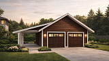 Деревянный гараж — это не только удобное и функциональное сооружение, но и отличная возможность дополнить архитектурный стиль вашего участка. Деревянные конструкции остаются вечной классикой, так как дерево — экологически чистый и натуральный материал. Одним из основных преимуществ деревянных гаражей является их доступная цена, что делает их более выгодным вариантом по сравнению с постройками из других материалов. При правильном строительстве деревянный гараж может служить десятилетиями, сохраняя все свои свойства и привлекательный внешний вид. Мы заботимся о качестве наших конструкций, обрабатывая древесину надёжными пропитками, которые защищают от гниения и плесени. Огнебиозащитные средства обеспечивают устойчивость к влаге, ультрафиолетовому излучению, перепадам температуры и другим атмосферным воздействиям. Кроме того, мы можем предложить утепление гаража, учитывая важность пароизоляции для сохранения тепла и защиты конструкции. Индивидуальное проектирование позволит вам точно вписать гараж в экстерьер вашего участка и оптимально спланировать внутреннее пространство для удобства использования. Создайте идеальное место для хранения вашего автомобиля и оборудования с нашим деревянным гаражом!