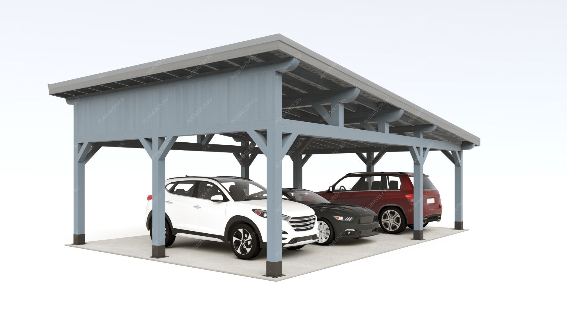 Односкатный навес из дерева «АТРИУМ» на три автомобиля предлагает надежное и эстетичное укрытие для вашего транспортного средства. Конструкция с габаритами 9.57×6.57 м и полезной площадью 62 м² обеспечивает просторное размещение трех машин. Односкатная крыша — классическое и проверенное решение. Ее конструкция с правильно рассчитанным углом наклона обеспечивает эффективный и естественный сток дождевой воды и талого снега, предотвращая образование опасных сосулек и скоплений снега. Простота этой формы обеспечивает минимальный расход материалов и надежность всей конструкции. Наличие такого капитального укрытия решает сразу несколько задач. Автомобили круглогодично защищены от атмосферных осадков, града, пыли и птичьего помета, что существенно экономит время и средства на частые мойки. Сохранность лакокрасочного покрытия и элементов кузова продлевает срок службы авто. Кроме того, практичная и добротная постройка функционально благоустраивает территорию и может повысить общую стоимость недвижимости. Это универсальное решение для загородного дома, дачи или коммерческой территории, где требуется надежная и вместительная парковка.