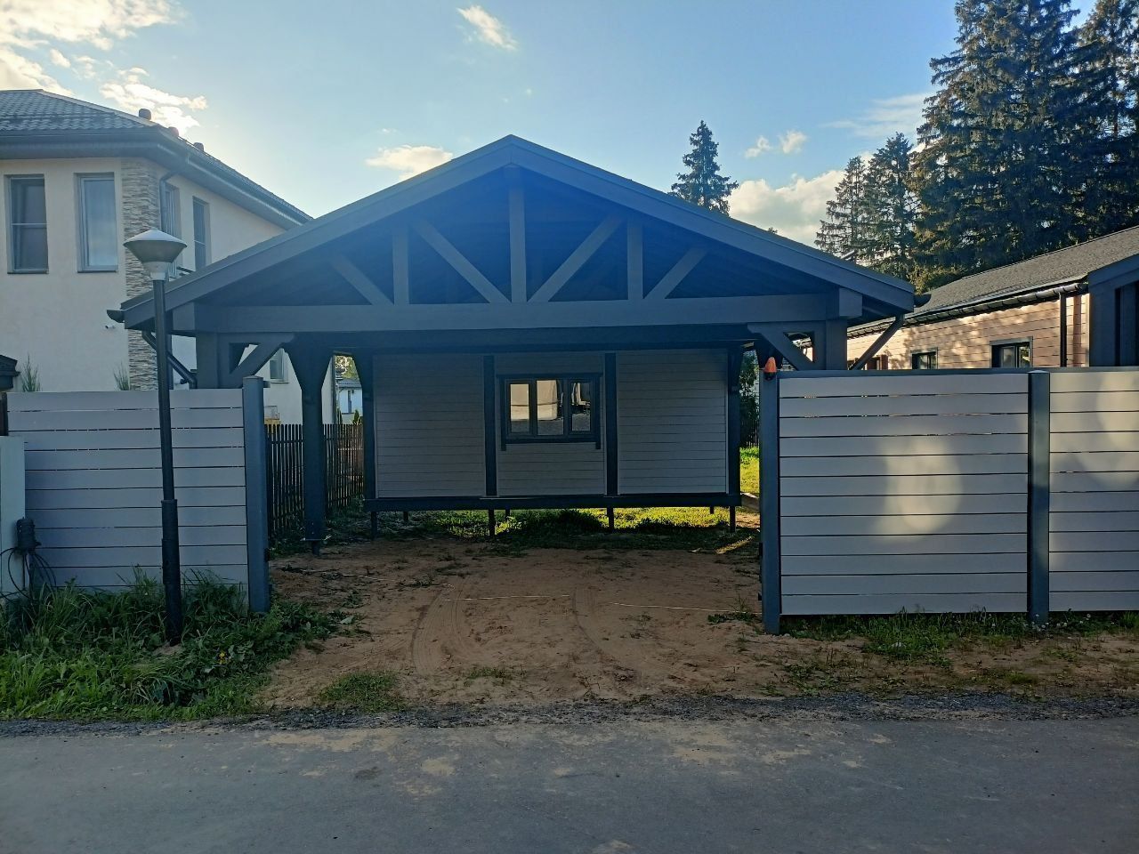 • Навес к частному дому для автомобиля ГРИМСТАД