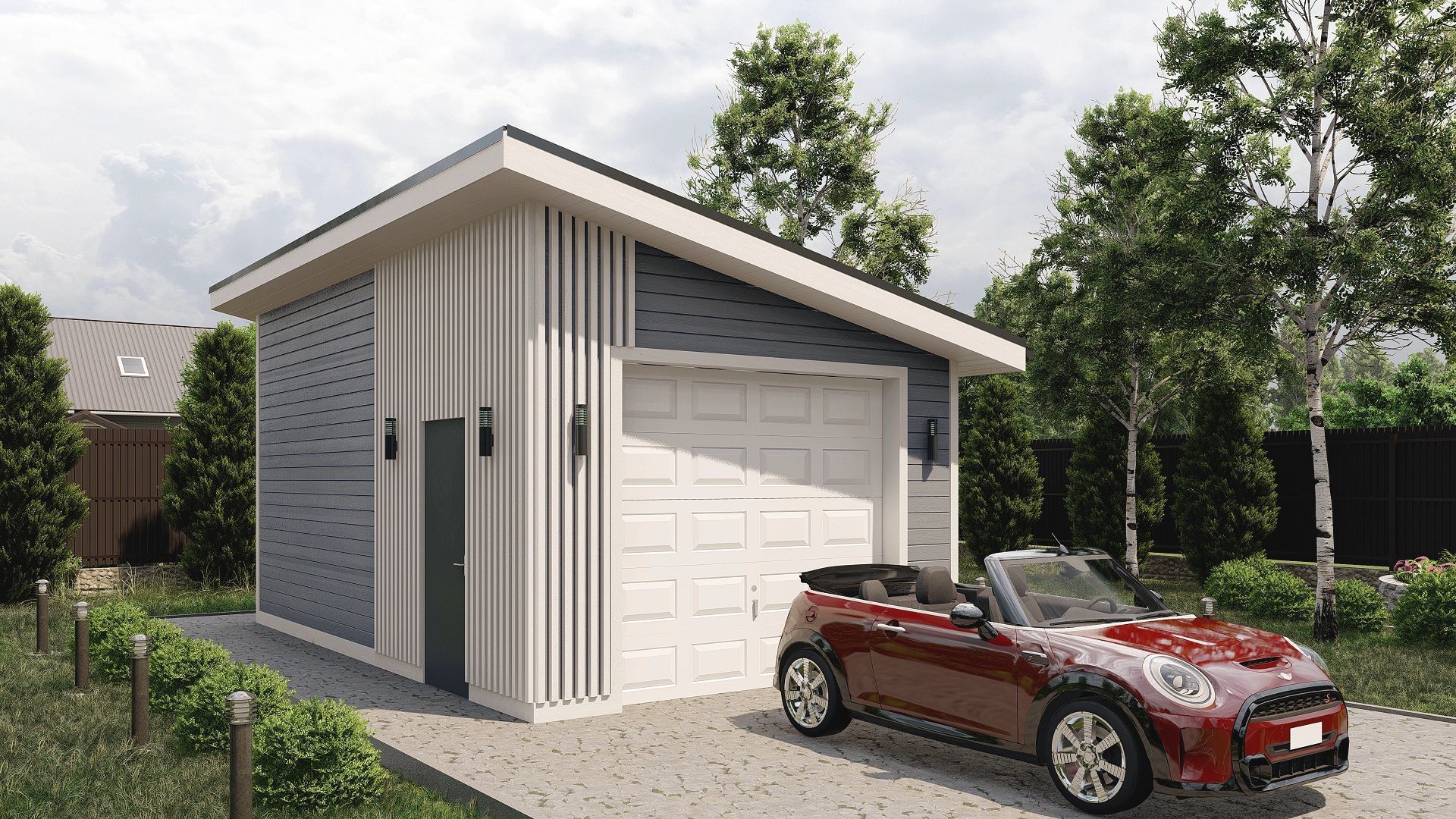 • Навес к частному дому для автомобиля ГРИМСТАД