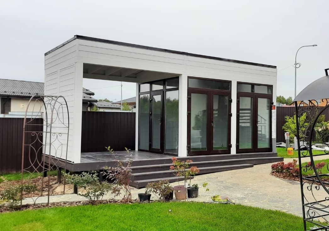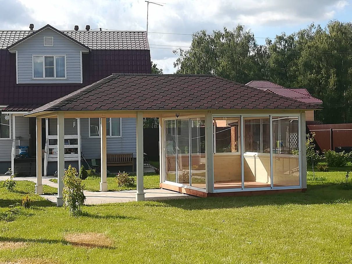 Изделия из клееного бруса предлагаются в трёх комплектациях: «несущий каркас», «базовая» и «премиум». В последнем случае стойки выполнены не из цельного массива дерева, а из клеёного бруса, а обрешётка кровли – из имитации бруса с замковым соединением.